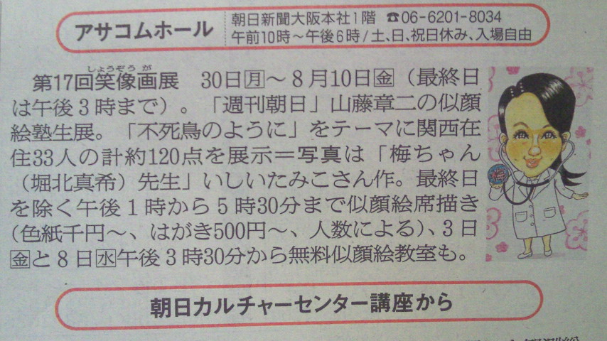 また、朝日新聞大阪本社ビルが建て替えのため、「笑像画展」のアサコムでの展示は今回がラストになります。