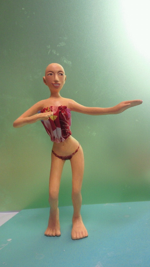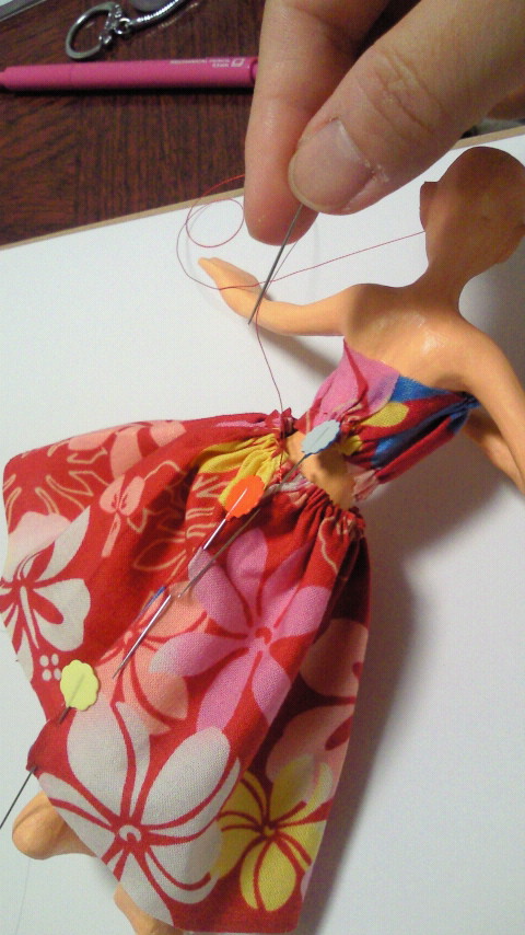 おとつい、人形をひっくり返してちくちくと、まるで手術のよーにスカートを塗い
