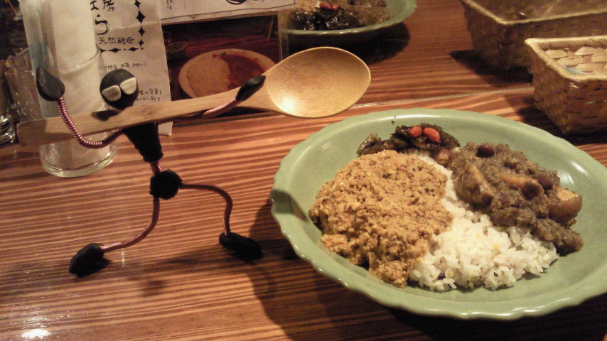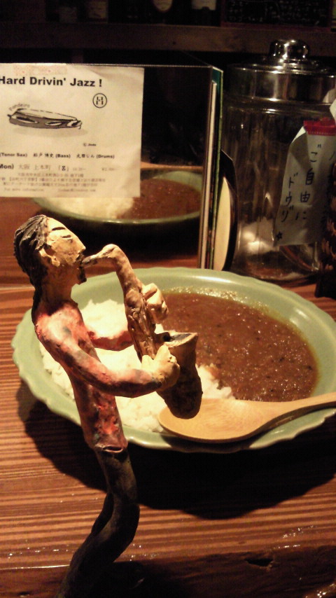 女将ゆうこちゃんのキーマカリーと、どこでもサックスくん。