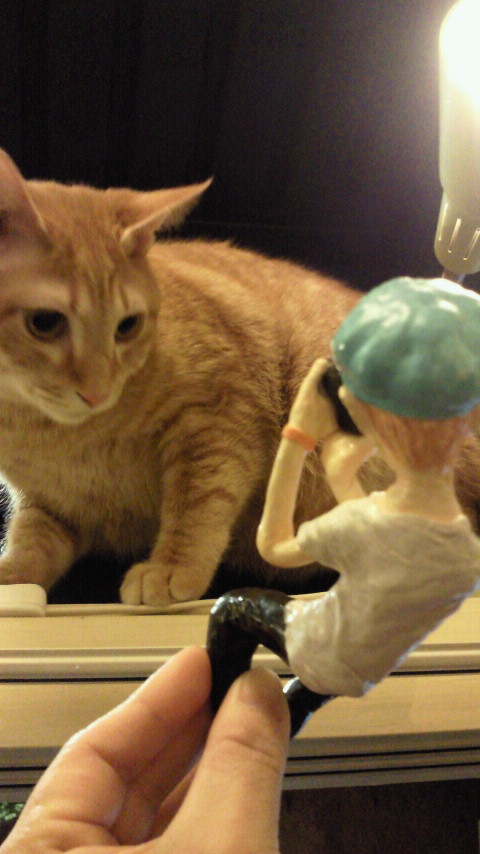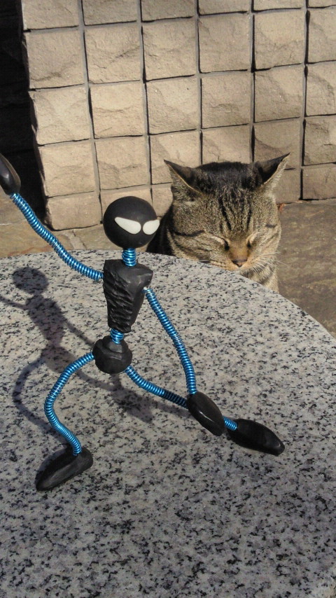 近所の公園猫とニンジャくん。ちょっとイヤがられましたが(笑)。