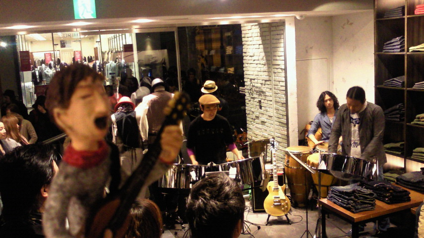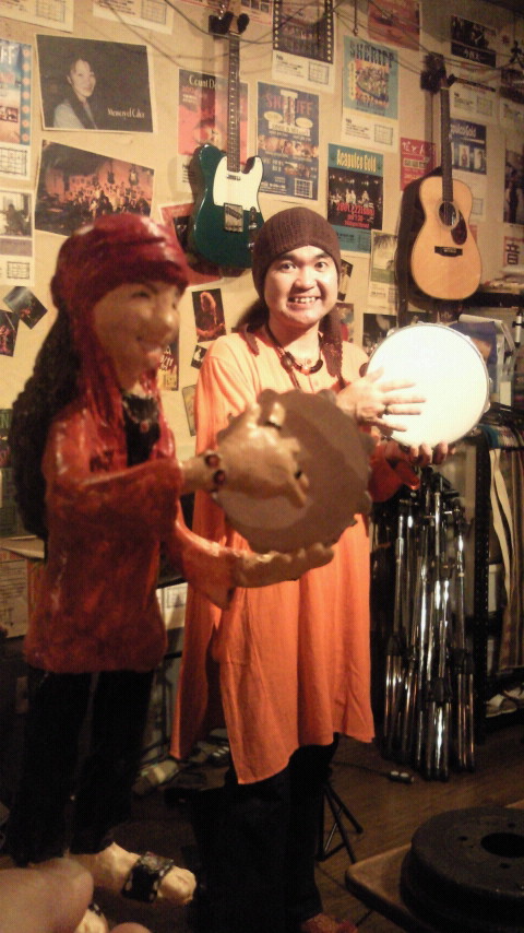 5/30(日)、当日やっと完成した人形をペーニャのA-Caribeライブでご披露~。